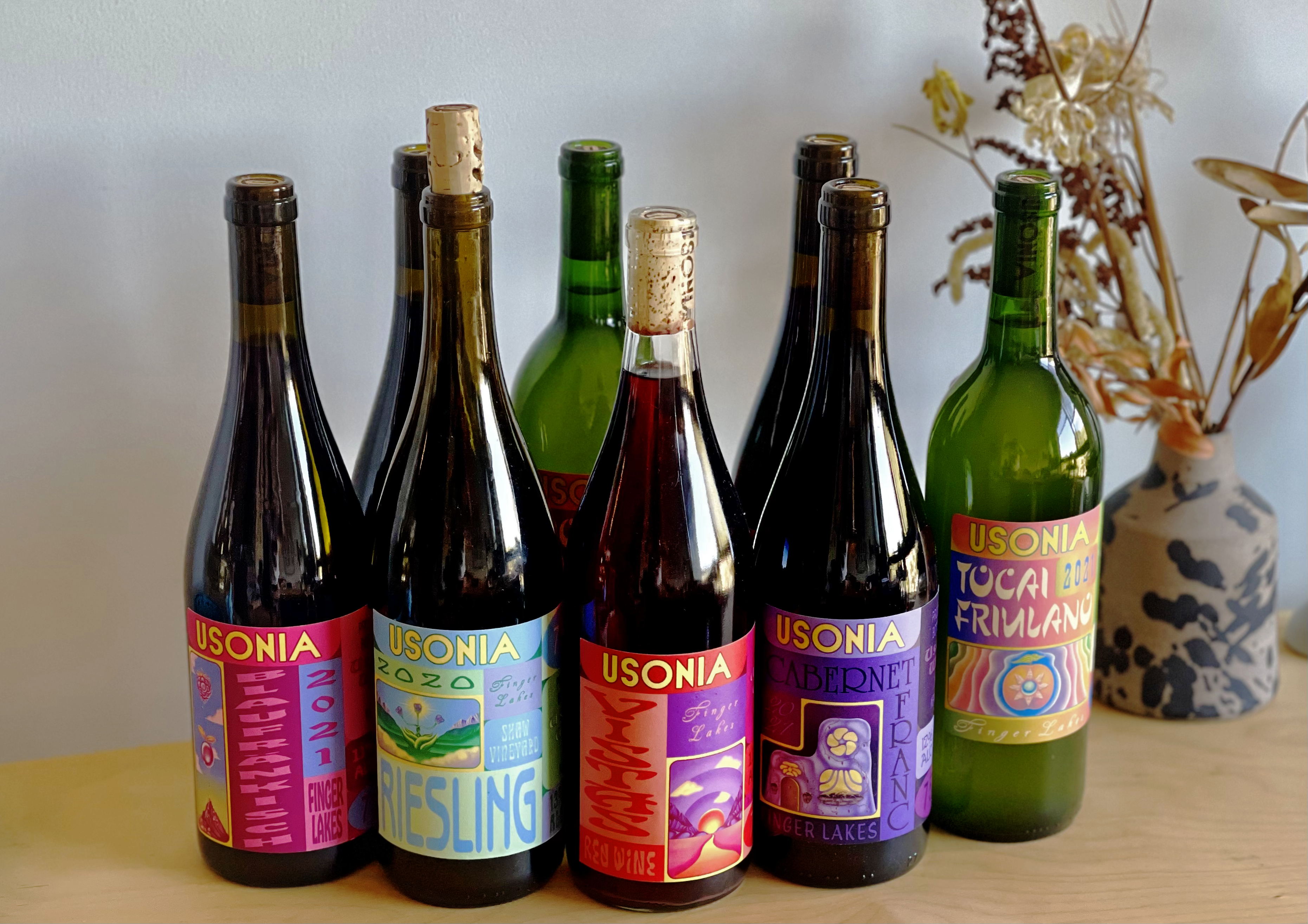 Designed typographically eclectic labels for Usonia Wines, with Creative Direction by Elana Schlenker and Illustrations by Jo Minor.